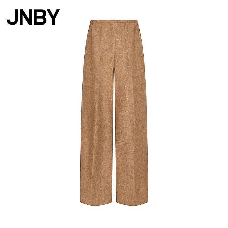 Introducing the JNBY Women's Loose Straight-Leg Casual Pants from the 2025 Winter collection. These stylish trousers in a warm camel shade feature a relaxed fit and a natural waist, perfect for everyday wear. Crafted from a comfortable blend of wool, linen, nylon, and polyester, they offer a regular thickness with no stretch. The design is simple, embodying a versatile casual and neutral style with an elastic waistband for ease.