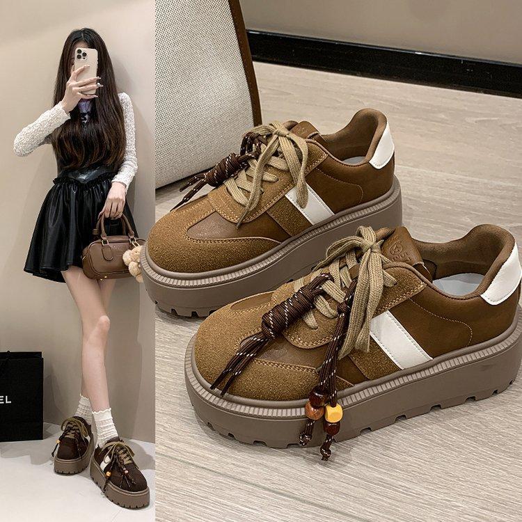 Thick-soled German training shoes for women's 2025 spring new super fire heightening versatile leather muffin Birken casual Forrest Gump shoes