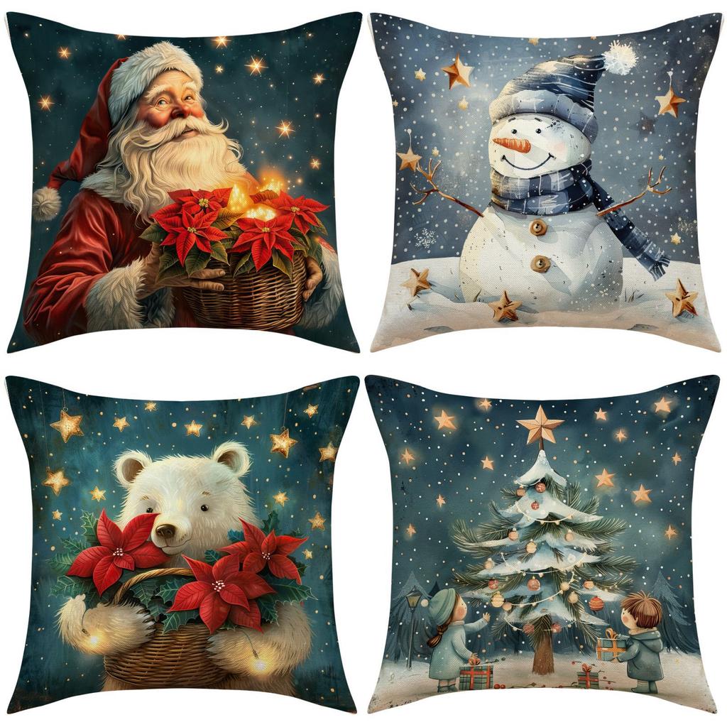 Christmas Pillow Case Snowman Print Decorative Cushion Living Room Festive Atmosphere Arrangement Sofa Pillow
