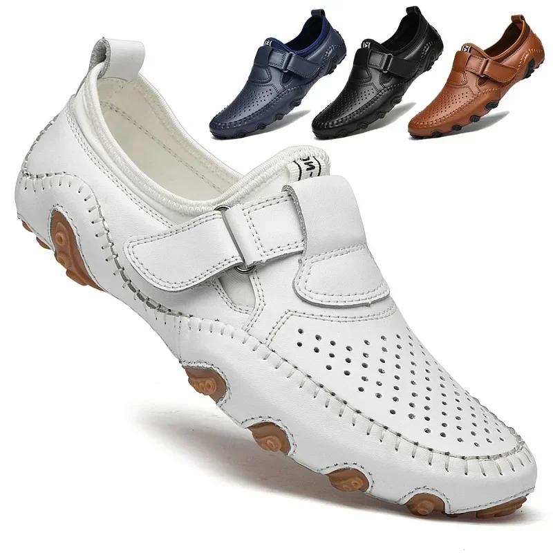 Genuine Leather Men Casual Shoes Handmade Italian Soft Hollow Out Leather Shoes for men Breathable Summer Driving Shoes