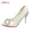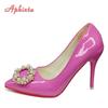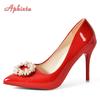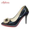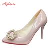 Aphixta Hot 10cm Stiletto Heels Pearl Buckle Gradient Pumps Women Shoes Patent Leather Super High Pointed Toe Super Big 48 49 50