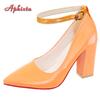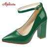 Aphixta 10cm 7cm Tacones Gruesos Zapatos de Salón para Mujer Hebilla Pimp Correa al Tobillo Zapatos Ocio Rojo Charol Talla Grande 35-50