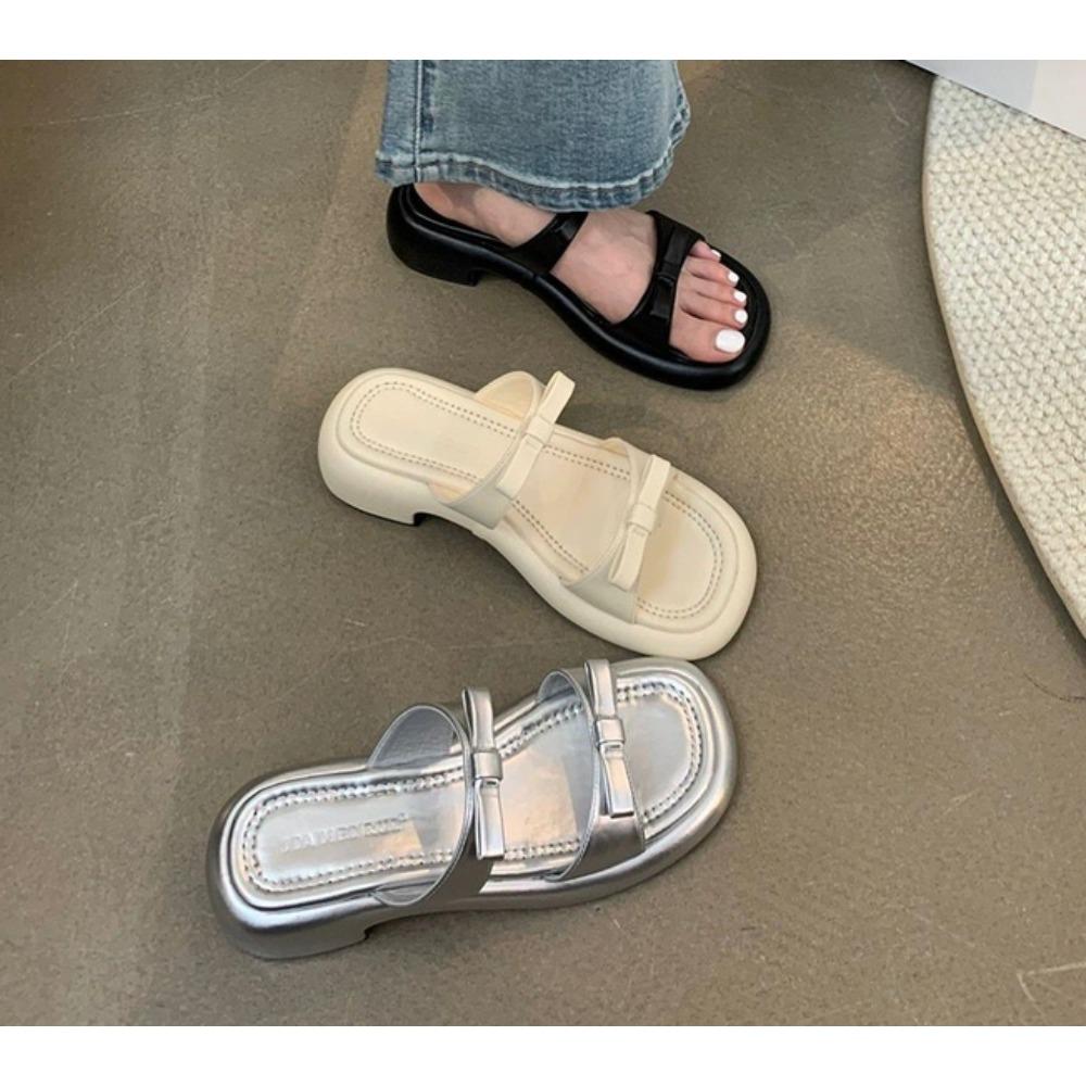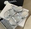 New Summer Women's Slippers 2025 Stylish Peep-toe Low Heel Silver Women's Comfortable Beach Shoes Sapatilas
