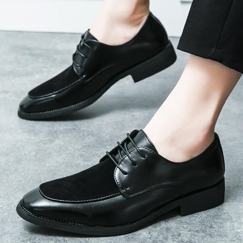 Fashion Trend Men's New Suede Patchwork Lace Up Casual Oxfords Gentleman Shoes Formal Wedding Prom Dress Homecoming Zapatillas Hombre