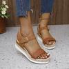 Wedge heel waterproof table woven hemp rope sandals women's 2025 new foreign trade large size 43 one word with buckle women's sandals