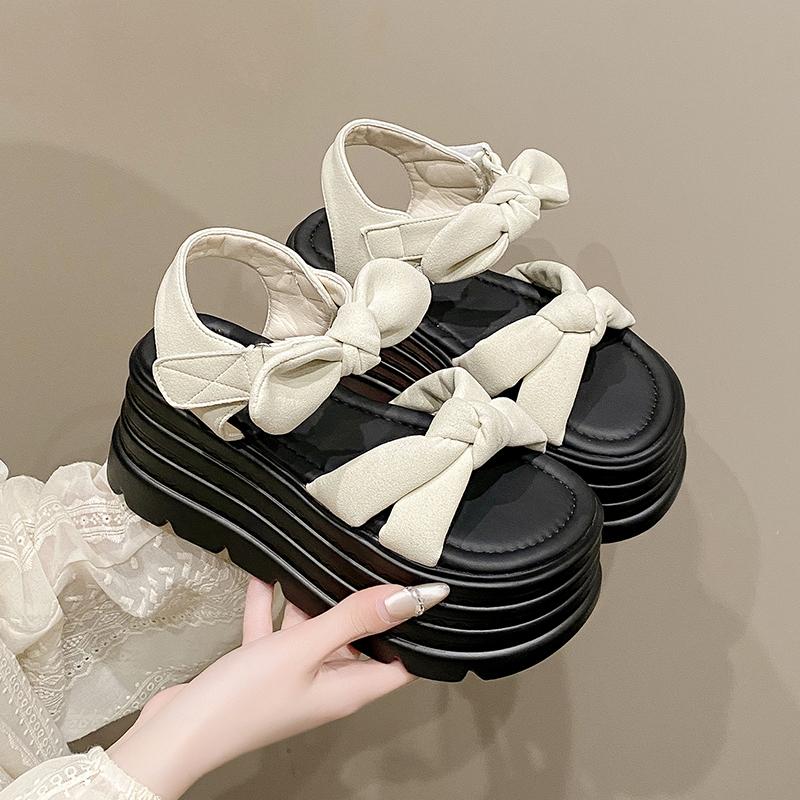 Fashion 8CM High Platform Sandals Women New Summer Breathable High Heels Ladies Butterfly-knot Sneakers Wedges Chunky Slippers Sandalias