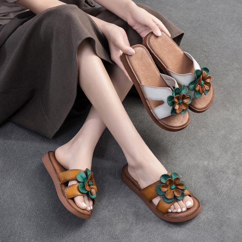 Fashion GKTINOO Genuine Leather Summer Shoes Women Slippers Flat Outside Slides Leisure 2025 New Handmade Concise Ladies Slippers