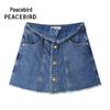 Peacebird Women's High-Waist A-Line Denim Shorts with Flip-Waist Design