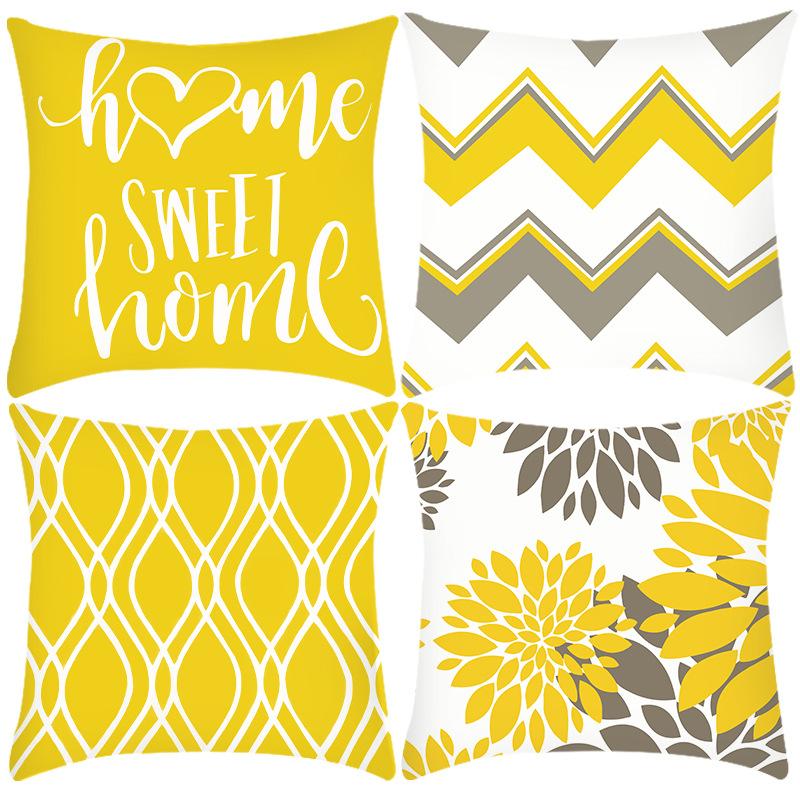 New Green Plant Letter Print Yellow Daisy Chrysanthemum Print Cushion Home Sofa Cushion Cover