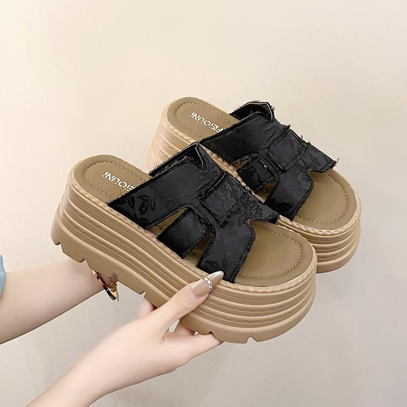 Zapatillas de tacón alto de 8 cm con plataforma para mujer, puntera abierta, sandalias de plataforma cruzada de diseñador, nuevos zapatos de verano para mujer, chanclas de playa con cuentas