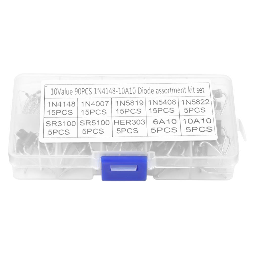 90PCS 10 Values Rectifier Diode Assortment Low Leakage Diode Bridge Kit Component Replacement