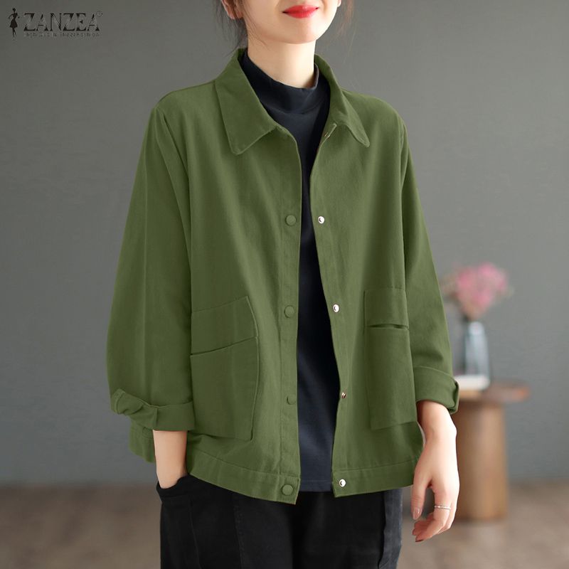 ZANZEA Women Casual Turn Down Collar Loose Long Sleeve Blouse