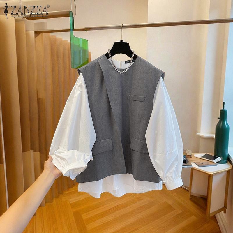 ZANZEA Blusa Casual de Manga Larga con Cuello Redondo para Mujer
