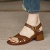 French Mid-heel Open-toe Sandals for Women's 2025 New Summer Fashion Cross-strap Commuting Chunk-heeled Anti-slip Women's Shoes