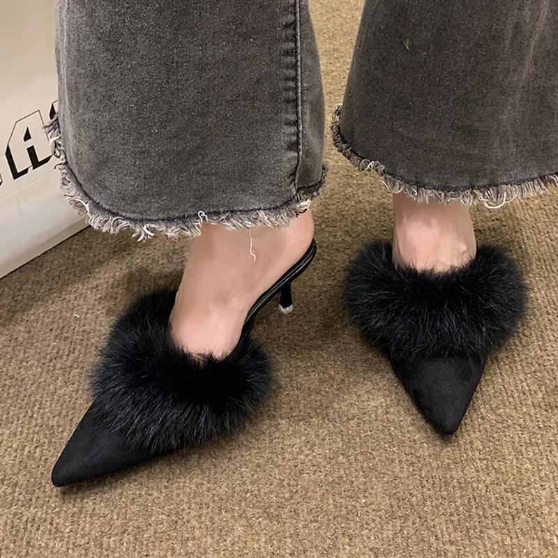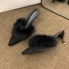 Fur Women High Heels Slippers Pointed Toe Slingback Mules Shoes Sexy Pumps 2025 Winter Designer Luxury Botines Mujeres