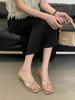 Niche thin strap square head open-toed high-heeled sandals girl 2025 spring and summer new one-word strap thin heel temperament light mouth slippers