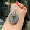 Jewelry Simulation Paraiba Retro Style Sparkle Full Of Diamonds Luxury Pendant Ring Stud Earrings Set