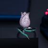 Light Luxury Three-Dimensional Tulip Flower Index Finger Ring Slightly Inlaid Zircon Rose Shape Ring Ring Ring Woman