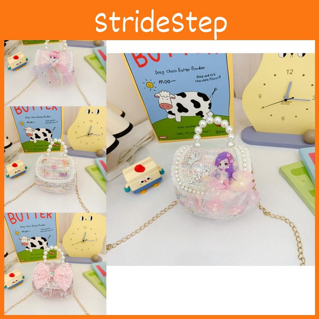 Girls Crossbody Bowknot Bag Sparkly Cartoon Shoulder Bag With Pearl Chain Strap