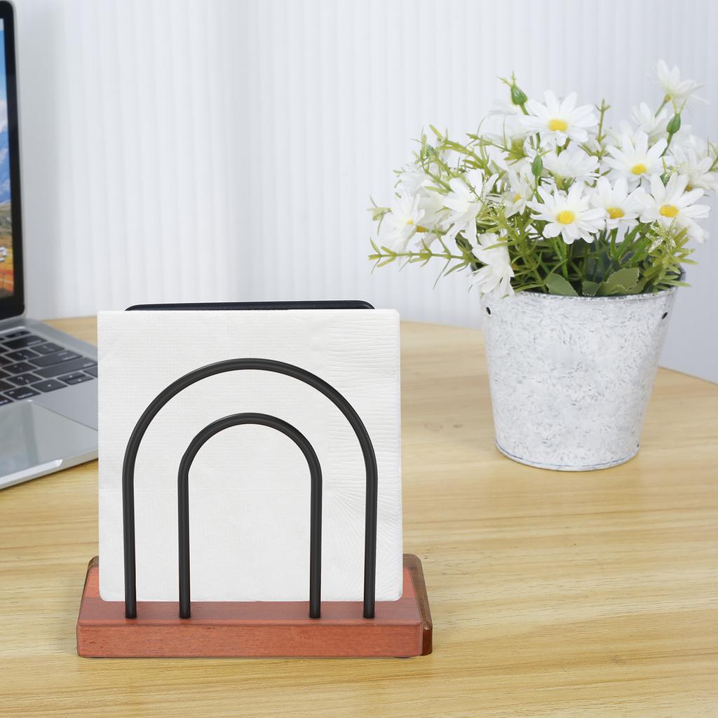 Napkin Holder Metal Iron Standing Wood Base For Restaurant Hotel Paper Napkin Holder Decorative Table Tissue Dispenser