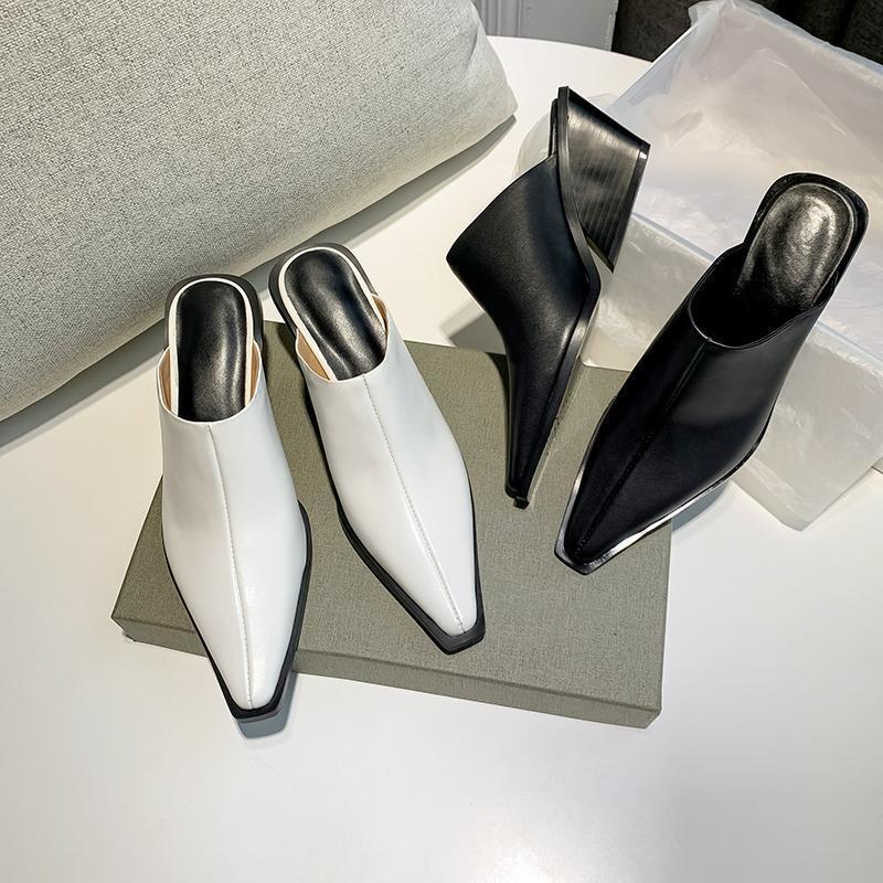 2025 new bag head half drag women's small square head wedge heel high heel sandals fashion wear thick heel lazy muller shoes