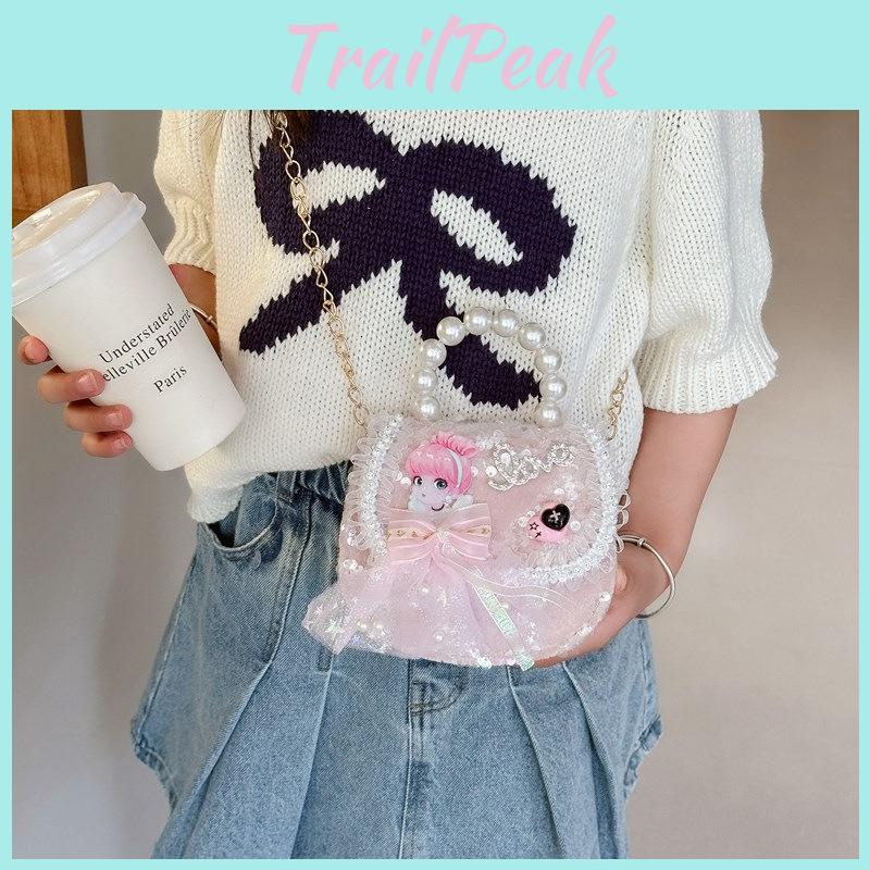 Crossbody Bowknot Girls Bag Sparkly Cartoon Shoulder Bag With Pearl Chain Strap