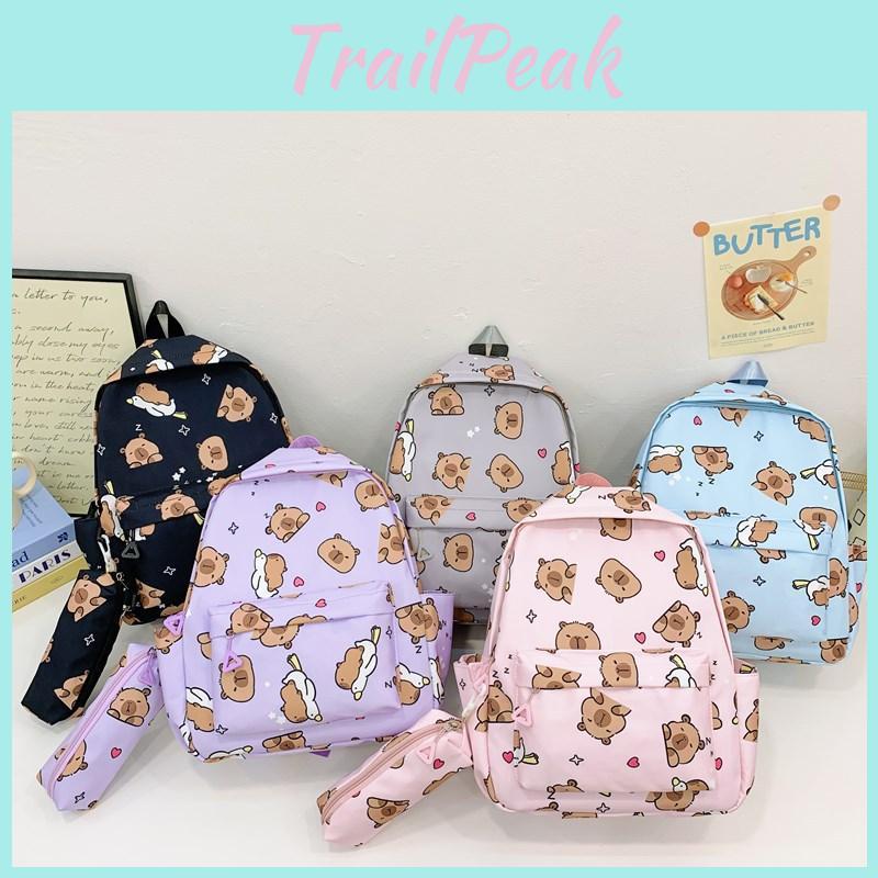Capybara Dual Trendy Shoulder Backpack Featuring Pencil Holder For School Kids