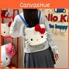 This kawaii-inspired, cartoon-style KT Cat single-shoulder bag made of durable PU material. Measuring 11.8 inches long, 3.9 inches wide, and 9.8 inches high, it supports 8-inch laptops and offers ample storage for daily essentials. Ideal for casual outings or school use, it includes a polyester lining and a curved shoulder strap for comfortable wear. Wipe clean with a damp cloth to maintain its vibrant appearance.