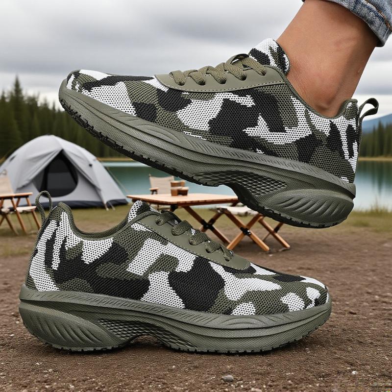 Camouflage Thick Soled Wide Toe Shoes for Women Breathable Comfort Outdoor Camping Running Shoes Wide Soled Platform Sneakers