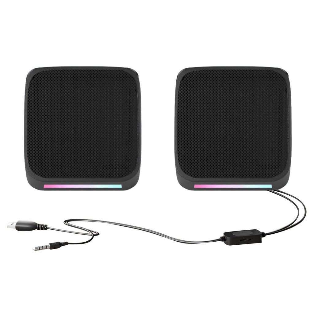 Features: Loud Volume & Compact Size: These desktop computer speakers deliver loud, clear, distortion-free Hi-Fi sound to meet your audio needs, whether watching movies, listening to music, or gaming. Plug and Play: Comes with a USB cable and a 3.5mm audio cable, these laptop speakers are ready to use immediately via USB (no drivers required). Delicate Design: These unique cylindrical desktop computer speakers feature high-quality plastic and matte metal panels with non-slip feet, making them ideal for modern homes, offices, and workspaces. Easy Volume Control: These USB computer speakers feature in-line volume controls for easy volume adjustment. Package Includes: 2 computer speakers.