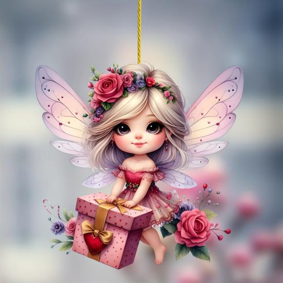 Yousheng Acrylic Car Rear View Mirror Charm Fairy Princess/Old Lady Christmas Ornament 2D Flat Auto Hanging Accessory for Xmas Tree Car Decor