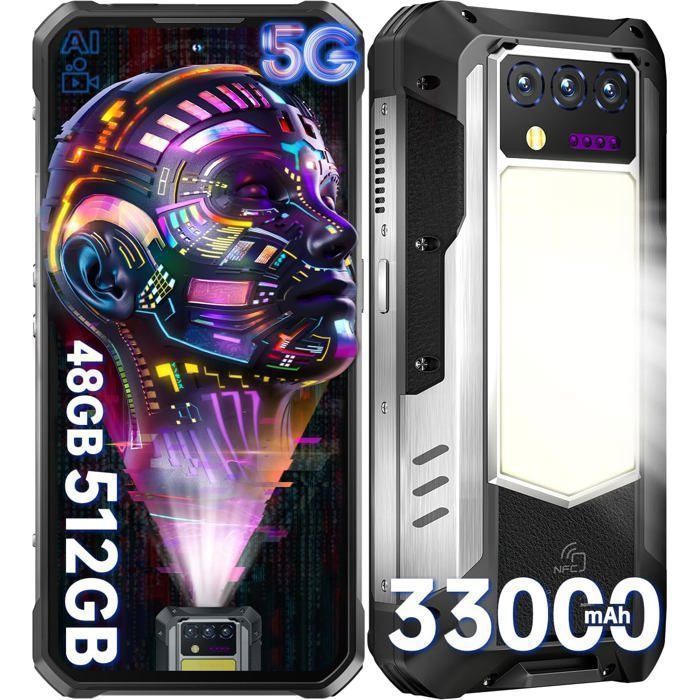Smartphone Rugerizado 5G OUKITEL WP100 Titan 48GB+512GB 6.8″ 33000mAh 200MP Smartphone Irrompible con Proyector 100lúm Dural SIM/NFC