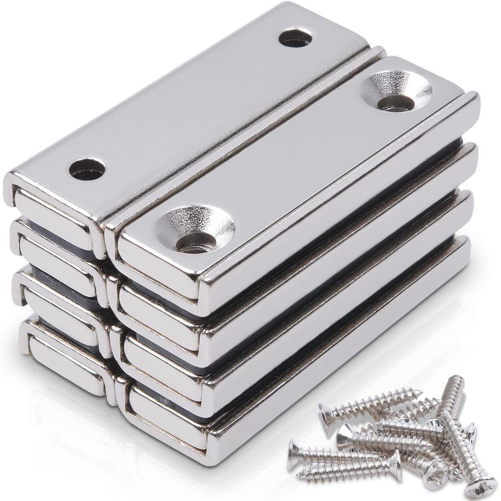 MAGXCENE Super Strong Neodymium Countersunk Screw Rectangular Square for Industrial and Outdoor Wall Mounting 8-Pack Magnets, 40x13.5x5mm, 3.5mm Hole,