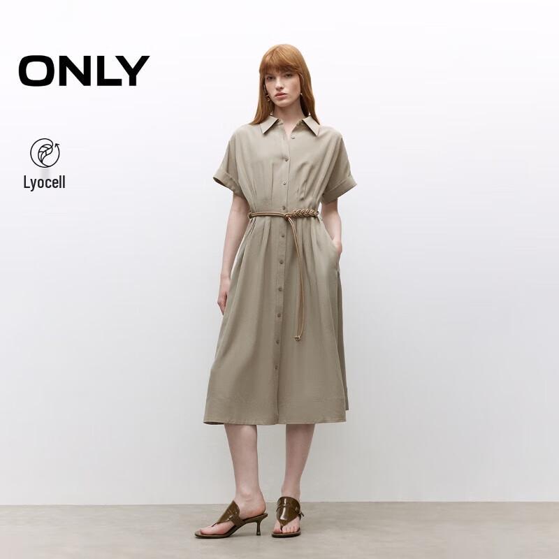 ONLY 2025 Spring Solid Lapel Short Sleeve A-Line Midi Dress