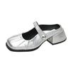French high-end silver bag head half slippers women's outer wear 2025 spring and summer new lazy one-pedal thick-heeled single shoes