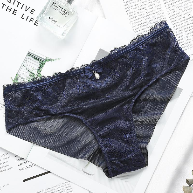 Ropa interior de encaje estilo europeo y americano con entrepierna de algodón ahuecada transpirable de talle medio para mujer