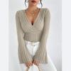 Tops de manga larga para otoño e invierno para mujer, tops sexys ajustados a rayas con cuello en V para mujer, camiseta de manga larga, camisa básica de punto
