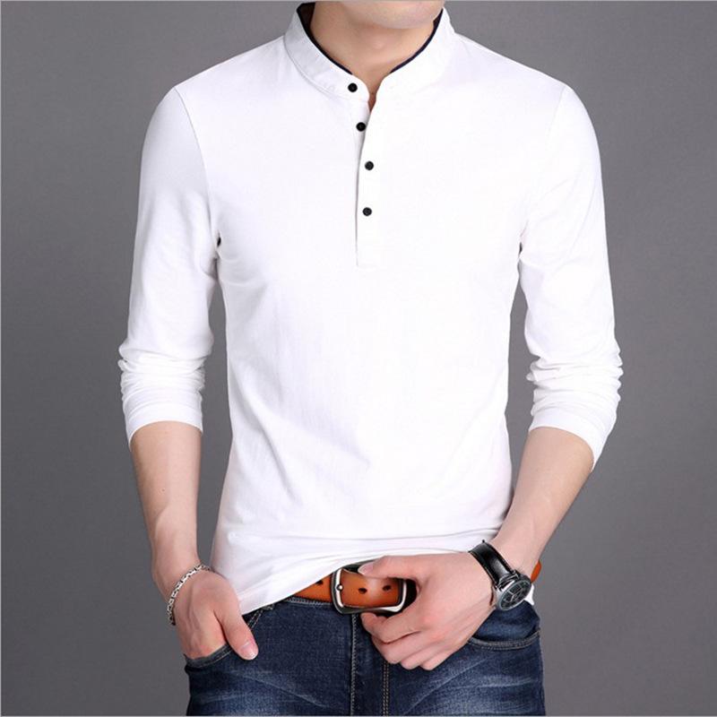 Experience the epitome of modern fashion with our Men's Slim Fit Korean Style Long Sleeve T-Shirt. Crafted from high-quality cotton material, this shirt offers both comfort and style. Featuring a stand-up collar and a sleek solid color design, it's perfect for the spring season. The slim fit silhouette complements your physique, making it an essential addition to any contemporary wardrobe.