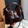 Vintage Maillard niche fashionable oil wax leather portable bucket bag, high-end light luxury commuter versatile messenger women's bag