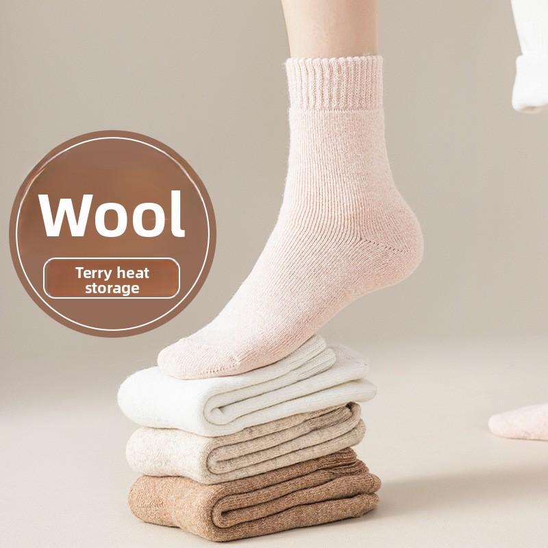 Women's Winter Thickened Fleece Wool Socks for Women, Mid-calf Socks for Warmth, Solid Color Simple Fleece Women's Socks for Autumn and Winter