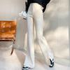 Women's Ribbed Fleece-Lined High-Waist Slit Flared Pants