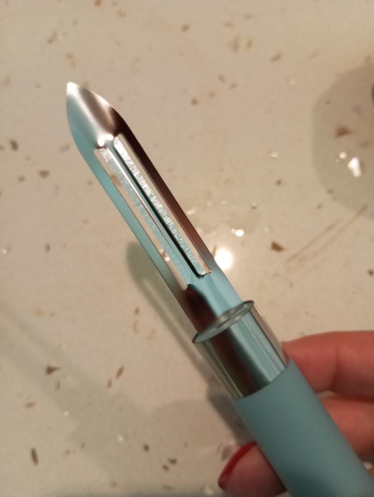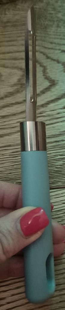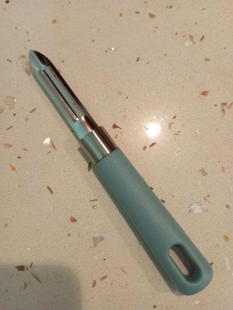 Cuchillo para pelar verduras/frutas. Buena calidad. Cómodo. Se adapta bien a la mano.. Picante. El plástico es resistente, sin ningún olor extraño. el color es hermoso. Recomiendo 🤗