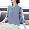 Qianlian Women's Lapel Patchwork Knit T-Shirt