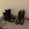 Madre uva otoño e invierno nuevas botas Martin tacón grueso retro cremallera trasera 6cm encogido lavado piel de caballo botines mujer