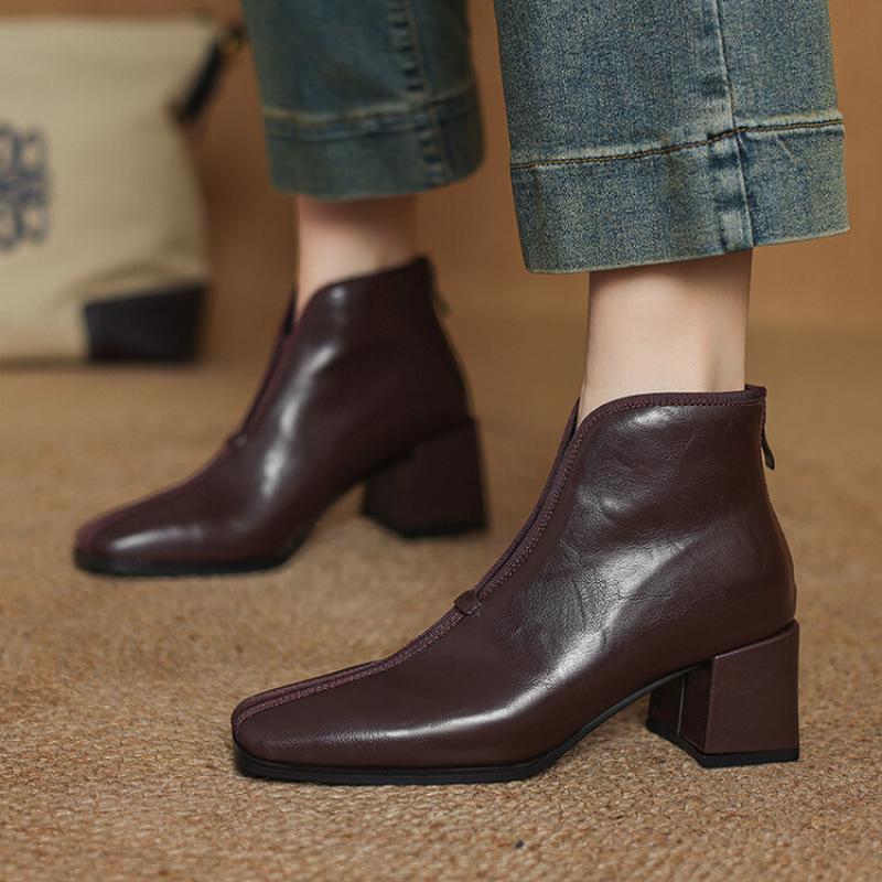 Autumn and winter Korean version large size medium tube boots women's high heel new rear zipper rubber sole women's boots square head fashion boots