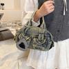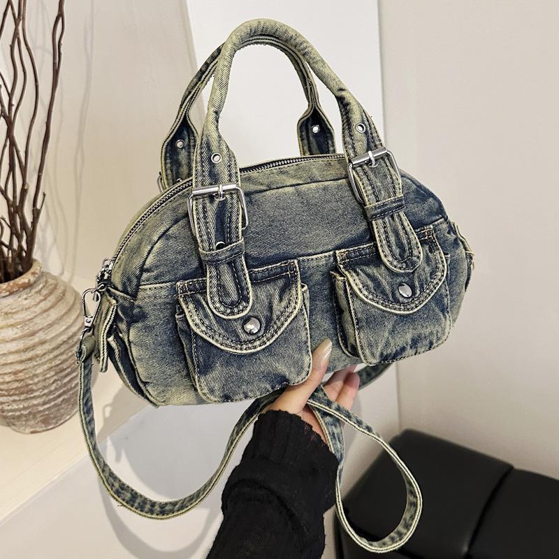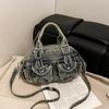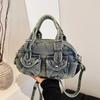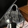 Denim bag women's autumn and winter versatile 2025 new casual pleated messenger bag portable Boston bowling bag