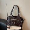 Korean niche design premium feeling Spice girl locomotive armpit bag large capacity rivet retro commuter shoulder messenger bag