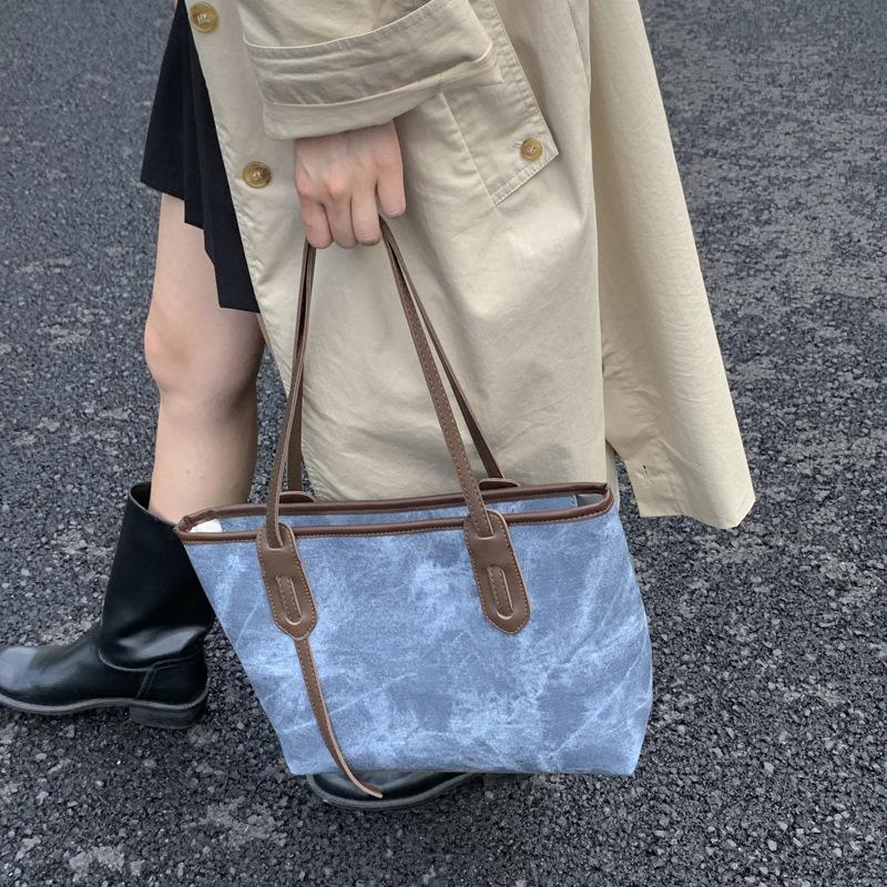 Large-capacity contrasting color underarm bag women's 2025 new trendy and versatile shoulder bag casual commuter tote bag