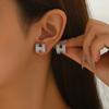 Pendientes de Mujer de Estilo Lujo Ligero de Moda Diseño Geométrico Letra H Incrustados Zirconia Pendientes de Tuerca Versátil Joyería de Oreja Nicho