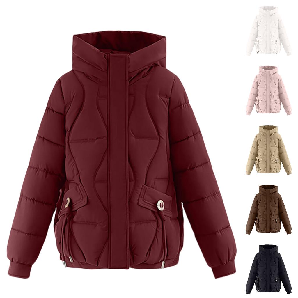 Women's Solid Color Fashionable Thick Warm Temperament Cotton Jacket Hooded Long Sleeved Jacket